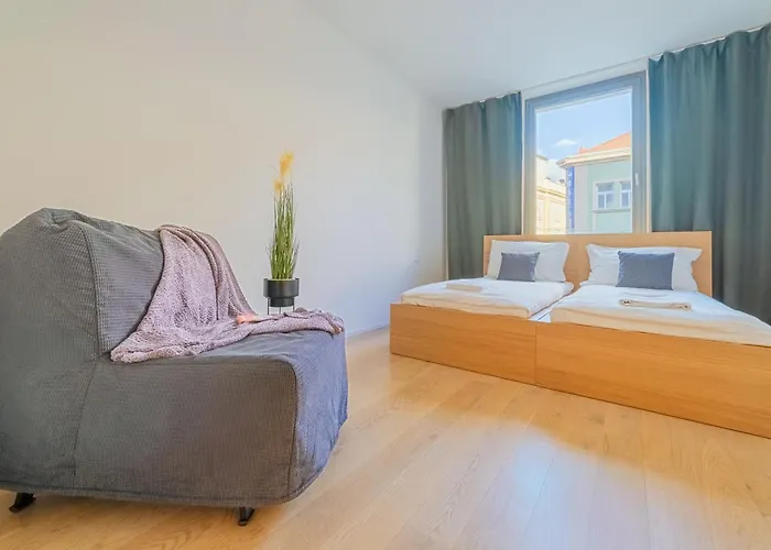 Το διαμέρισμα βρίσκεται 450 μέτρα μακριά από το σταθμό μετρό Andel. Έχει Restaurace U Kristiana και MacKavarna που σερβίρουν πιάτα ανατολικοευρωπαϊκής κουζίνας, και απέχουν 5 λεπτά με τα πόδια από το κατάλυμα.